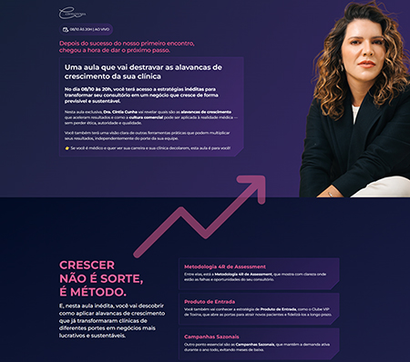 Páginas criadas exclusivamente para converter visitantes em leads ou clientes.